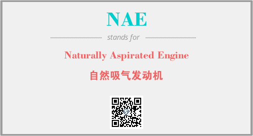上述内容是“Naturally Aspirated Engine”作为“NAE”的缩写,解释为“自然吸气发动机”时的信息,以及英文缩略词NAE所代表的英文单词,其对应的中文拼音、详细解释以及在英文中的流行度和相关分类、应用领域及应用示例等。