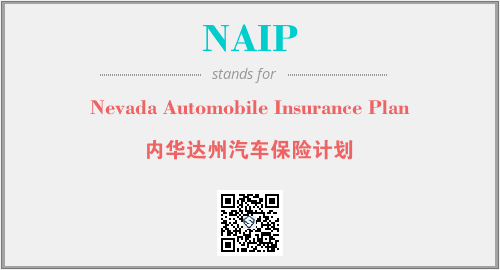 上述内容是“Nevada Automobile Insurance Plan”作为“NAIP”的缩写,解释为“内华达州汽车保险计划”时的信息,以及英文缩略词NAIP所代表的英文单词,其对应的中文拼音、详细解释以及在英文中的流行度和相关分类、应用领域及应用示例等。