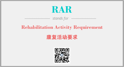 英文缩略词“RAR”经常作为“Rehabilitation Activity Requirement”的英文缩写来使用,中文表示:“康复活动要求”。本文将详细介绍英文缩写词RAR所代表英文单词,其对应的中文拼音、详细解释以及在英语中的流行度。此外,还有关于缩略词RAR的分类、应用领域及相关应用示例等。