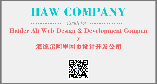 英文缩略词“HAW COMPANY”经常作为“Haider Ali Web Design & Development Company”的英文缩写来使用,中文表示:“海德尔阿里网页设计开发公司”。本文将详细介绍英文缩写词HAW COMPANY所代表英文单词,其对应的中文拼音、详细解释以及在英语中的流行度。此外,还有关于缩略词HAW COMPANY的分类、应用领域及相关应用示例等。