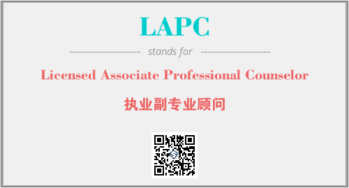 上述内容是“Licensed Associate Professional Counselor”作为“LAPC”的缩写,解释为“执业副专业顾问”时的信息,以及英文缩略词LAPC所代表的英文单词,其对应的中文拼音、详细解释以及在英文中的流行度和相关分类、应用领域及应用示例等。