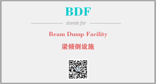 英文缩略词“BDF”经常作为“Beam Dump Facility”的英文缩写来使用,中文表示:“梁倾倒设施”。本文将详细介绍英文缩写词BDF所代表英文单词,其对应的中文拼音、详细解释以及在英语中的流行度。此外,还有关于缩略词BDF的分类、应用领域及相关应用示例等。