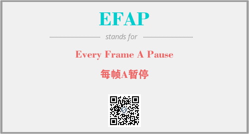 上述内容是“Every Frame A Pause”作为“EFAP”的缩写,解释为“每帧A暂停”时的信息,以及英文缩略词EFAP所代表的英文单词,其对应的中文拼音、详细解释以及在英文中的流行度和相关分类、应用领域及应用示例等。