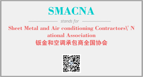 上述内容是“Sheet Metal and Air conditioning Contractors\' National Association”作为“SMACNA”的缩写,解释为“钣金和空调承包商全国协会”时的信息,以及英文缩略词SMACNA所代表的英文单词,其对应的中文拼音、详细解释以及在英文中的流行度和相关分类、应用领域及应用示例等。