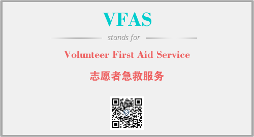 英文缩略词“VFAS”经常作为“Volunteer First Aid Service”的英文缩写来使用,中文表示:“志愿者急救服务”。本文将详细介绍英文缩写词VFAS所代表英文单词,其对应的中文拼音、详细解释以及在英语中的流行度。此外,还有关于缩略词VFAS的分类、应用领域及相关应用示例等。