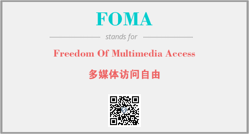 以上为Freedom Of Multimedia Access英文缩略词FOMA的中文解释,以及该英文缩写在英语的流行度、分类和应用领域方面的信息。