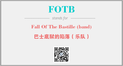 上述内容是“Fall Of The Bastille (band)”作为“FOTB”的缩写,解释为“巴士底狱的陷落(乐队)”时的信息,以及英文缩略词FOTB所代表的英文单词,其对应的中文拼音、详细解释以及在英文中的流行度和相关分类、应用领域及应用示例等。