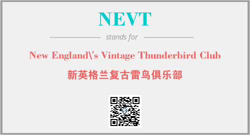 上述内容是“New England\'s Vintage Thunderbird Club”作为“NEVT”的缩写,解释为“新英格兰复古雷鸟俱乐部”时的信息,以及英文缩略词NEVT所代表的英文单词,其对应的中文拼音、详细解释以及在英文中的流行度和相关分类、应用领域及应用示例等。