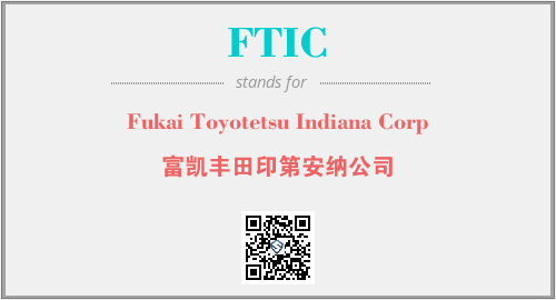 上述内容是“Fukai Toyotetsu Indiana Corp”作为“FTIC”的缩写,解释为“富凯丰田印第安纳公司”时的信息,以及英文缩略词FTIC所代表的英文单词,其对应的中文拼音、详细解释以及在英文中的流行度和相关分类、应用领域及应用示例等。