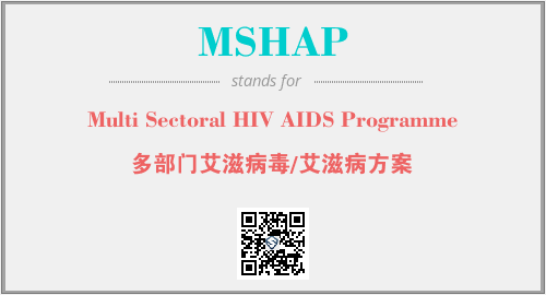 英文缩略词“MSHAP”经常作为“Multi Sectoral HIV AIDS Programme”的英文缩写来使用,中文表示:“多部门艾滋病毒/艾滋病方案”。本文将详细介绍英文缩写词MSHAP所代表英文单词,其对应的中文拼音、详细解释以及在英语中的流行度。此外,还有关于缩略词MSHAP的分类、应用领域及相关应用示例等。