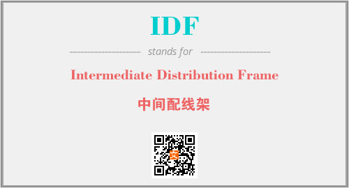 上述内容是“Intermediate Distribution Frame”作为“IDF”的缩写,解释为“中间配线架”时的信息,以及英文缩略词IDF所代表的英文单词,其对应的中文拼音、详细解释以及在英文中的流行度和相关分类、应用领域及应用示例等。
