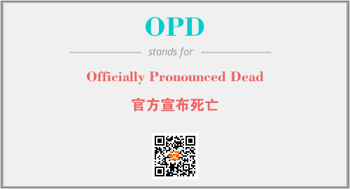以上为Officially Pronounced Dead英文缩略词OPD的中文解释,以及该英文缩写在英语的流行度、分类和应用领域方面的信息。