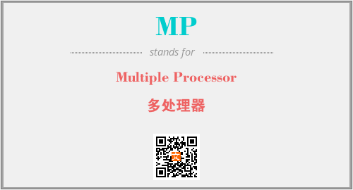 英文缩略词“MP”经常作为“Multiple Processor”的英文缩写来使用,中文表示:“多处理器”。本文将详细介绍英文缩写词MP所代表英文单词,其对应的中文拼音、详细解释以及在英语中的流行度。此外,还有关于缩略词MP的分类、应用领域及相关应用示例等。