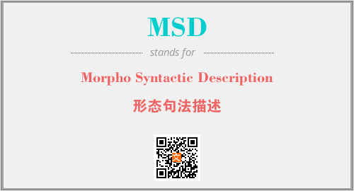 英文缩略词“MSD”经常作为“Morpho Syntactic Description”的英文缩写来使用,中文表示:“形态句法描述”。本文将详细介绍英文缩写词MSD所代表英文单词,其对应的中文拼音、详细解释以及在英语中的流行度。此外,还有关于缩略词MSD的分类、应用领域及相关应用示例等。