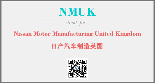 上述内容是“Nissan Motor Manufacturing United Kingdom”作为“NMUK”的缩写,解释为“日产汽车制造英国”时的信息,以及英文缩略词NMUK所代表的英文单词,其对应的中文拼音、详细解释以及在英文中的流行度和相关分类、应用领域及应用示例等。