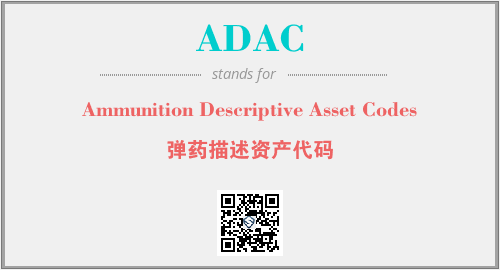英文缩略词“ADAC”经常作为“Ammunition Descriptive Asset Codes”的英文缩写来使用,中文表示:“弹药描述资产代码”。本文将详细介绍英文缩写词ADAC所代表英文单词,其对应的中文拼音、详细解释以及在英语中的流行度。此外,还有关于缩略词ADAC的分类、应用领域及相关应用示例等。