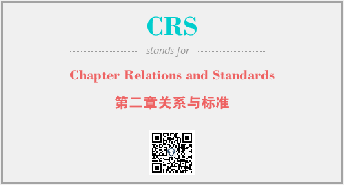 上述内容是“Chapter Relations and Standards”作为“CRS”的缩写,解释为“第二章关系与标准”时的信息,以及英文缩略词CRS所代表的英文单词,其对应的中文拼音、详细解释以及在英文中的流行度和相关分类、应用领域及应用示例等。