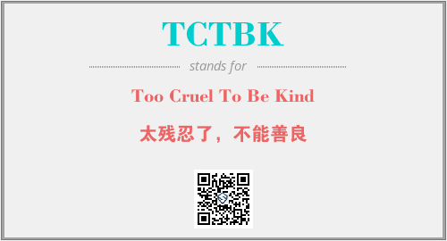 上述内容是“Too Cruel To Be Kind”作为“TCTBK”的缩写,解释为“太残忍了,不能善良”时的信息,以及英文缩略词TCTBK所代表的英文单词,其对应的中文拼音、详细解释以及在英文中的流行度和相关分类、应用领域及应用示例等。