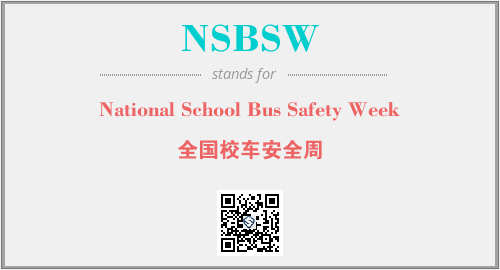 英文缩略词“NSBSW”经常作为“National School Bus Safety Week”的英文缩写来使用,中文表示:“全国校车安全周”。本文将详细介绍英文缩写词NSBSW所代表英文单词,其对应的中文拼音、详细解释以及在英语中的流行度。此外,还有关于缩略词NSBSW的分类、应用领域及相关应用示例等。