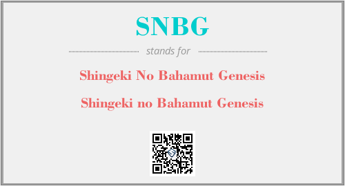 英文缩略词“SNBG”经常作为“Shingeki No Bahamut Genesis”的英文缩写来使用,中文表示:“Shingeki no Bahamut Genesis”。本文将详细介绍英文缩写词SNBG所代表英文单词,其对应的中文拼音、详细解释以及在英语中的流行度。此外,还有关于缩略词SNBG的分类、应用领域及相关应用示例等。