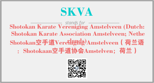 以上为Shotokan Karate Vereniging Amstelveen (Dutch: Shotokan Karate Association Amstelveen; Netherlands)英文缩略词SKVA的中文解释,以及该英文缩写在英语的流行度、分类和应用领域方面的信息。