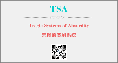 上述内容是“Tragic Systems of Absurdity”作为“TSA”的缩写,解释为“荒谬的悲剧系统”时的信息,以及英文缩略词TSA所代表的英文单词,其对应的中文拼音、详细解释以及在英文中的流行度和相关分类、应用领域及应用示例等。
