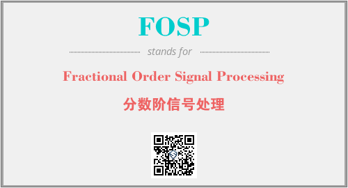 英文缩略词“FOSP”经常作为“Fractional Order Signal Processing”的英文缩写来使用,中文表示:“分数阶信号处理”。本文将详细介绍英文缩写词FOSP所代表英文单词,其对应的中文拼音、详细解释以及在英语中的流行度。此外,还有关于缩略词FOSP的分类、应用领域及相关应用示例等。