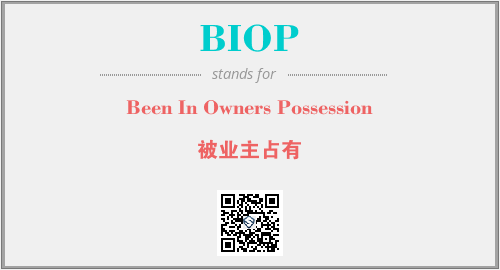 以上为Been In Owners Possession英文缩略词BIOP的中文解释,以及该英文缩写在英语的流行度、分类和应用领域方面的信息。