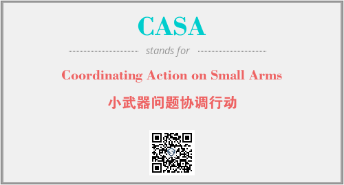 上述内容是“Coordinating Action on Small Arms”作为“CASA”的缩写,解释为“小武器问题协调行动”时的信息,以及英文缩略词CASA所代表的英文单词,其对应的中文拼音、详细解释以及在英文中的流行度和相关分类、应用领域及应用示例等。