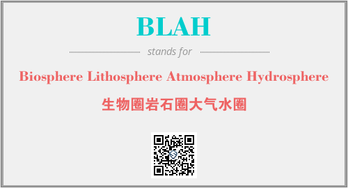 以上为Biosphere Lithosphere Atmosphere Hydrosphere英文缩略词BLAH的中文解释,以及该英文缩写在英语的流行度、分类和应用领域方面的信息。