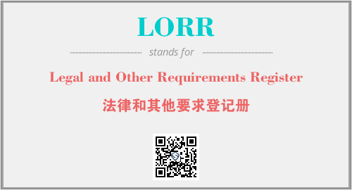 上述内容是“Legal and Other Requirements Register”作为“LORR”的缩写,解释为“法律和其他要求登记册”时的信息,以及英文缩略词LORR所代表的英文单词,其对应的中文拼音、详细解释以及在英文中的流行度和相关分类、应用领域及应用示例等。