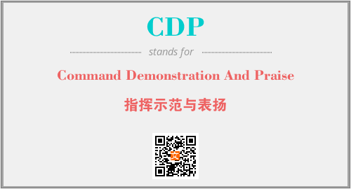 上述内容是“Command Demonstration And Praise”作为“CDP”的缩写,解释为“指挥示范与表扬”时的信息,以及英文缩略词CDP所代表的英文单词,其对应的中文拼音、详细解释以及在英文中的流行度和相关分类、应用领域及应用示例等。