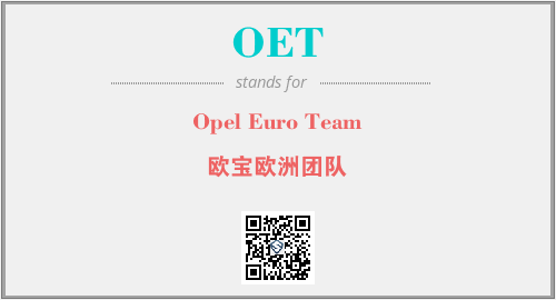 英文缩略词“OET”经常作为“Opel Euro Team”的英文缩写来使用,中文表示:“欧宝欧洲团队”。本文将详细介绍英文缩写词OET所代表英文单词,其对应的中文拼音、详细解释以及在英语中的流行度。此外,还有关于缩略词OET的分类、应用领域及相关应用示例等。