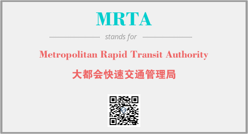 以上为Metropolitan Rapid Transit Authority英文缩略词MRTA的中文解释,以及该英文缩写在英语的流行度、分类和应用领域方面的信息。
