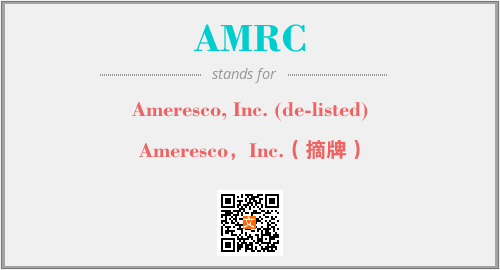 英文缩略词“AMRC”经常作为“Ameresco, Inc. (de-listed)”的英文缩写来使用,中文表示:“Ameresco,Inc.(摘牌)”。本文将详细介绍英文缩写词AMRC所代表英文单词,其对应的中文拼音、详细解释以及在英语中的流行度。此外,还有关于缩略词AMRC的分类、应用领域及相关应用示例等。