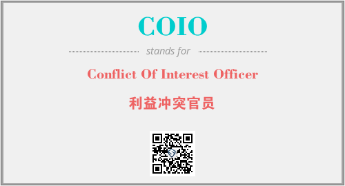 上述内容是“Conflict Of Interest Officer”作为“COIO”的缩写,解释为“利益冲突官员”时的信息,以及英文缩略词COIO所代表的英文单词,其对应的中文拼音、详细解释以及在英文中的流行度和相关分类、应用领域及应用示例等。