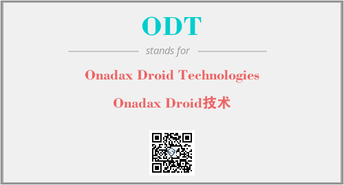 英文缩略词“ODT”经常作为“Onadax Droid Technologies”的英文缩写来使用,中文表示:“Onadax Droid技术”。本文将详细介绍英文缩写词ODT所代表英文单词,其对应的中文拼音、详细解释以及在英语中的流行度。此外,还有关于缩略词ODT的分类、应用领域及相关应用示例等。