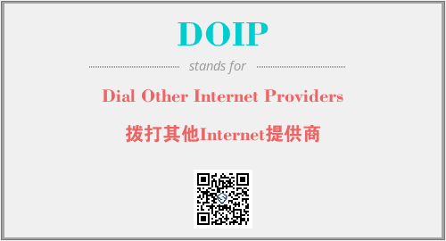 英文缩略词“DOIP”经常作为“Dial Other Internet Providers”的英文缩写来使用,中文表示:“拨打其他Internet提供商”。本文将详细介绍英文缩写词DOIP所代表英文单词,其对应的中文拼音、详细解释以及在英语中的流行度。此外,还有关于缩略词DOIP的分类、应用领域及相关应用示例等。