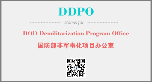 英文缩略词“DDPO”经常作为“DOD Demilitarization Program Office”的英文缩写来使用,中文表示:“国防部非军事化项目办公室”。本文将详细介绍英文缩写词DDPO所代表英文单词,其对应的中文拼音、详细解释以及在英语中的流行度。此外,还有关于缩略词DDPO的分类、应用领域及相关应用示例等。