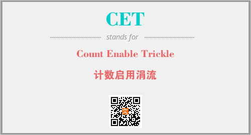 英文缩略词“CET”经常作为“Count Enable Trickle”的英文缩写来使用,中文表示:“计数启用涓流”。本文将详细介绍英文缩写词CET所代表英文单词,其对应的中文拼音、详细解释以及在英语中的流行度。此外,还有关于缩略词CET的分类、应用领域及相关应用示例等。
