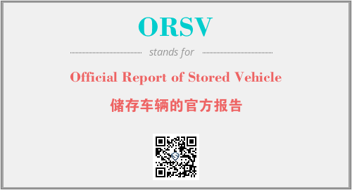 上述内容是“Official Report of Stored Vehicle”作为“ORSV”的缩写,解释为“储存车辆的官方报告”时的信息,以及英文缩略词ORSV所代表的英文单词,其对应的中文拼音、详细解释以及在英文中的流行度和相关分类、应用领域及应用示例等。