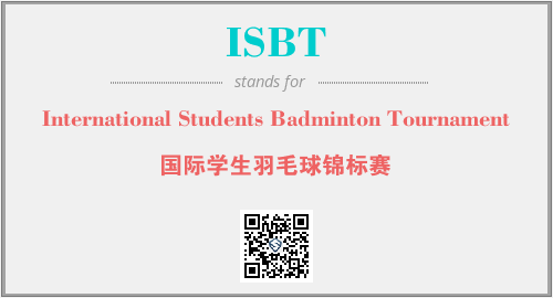 英文缩略词“ISBT”经常作为“International Students Badminton Tournament”的英文缩写来使用,中文表示:“国际学生羽毛球锦标赛”。本文将详细介绍英文缩写词ISBT所代表英文单词,其对应的中文拼音、详细解释以及在英语中的流行度。此外,还有关于缩略词ISBT的分类、应用领域及相关应用示例等。
