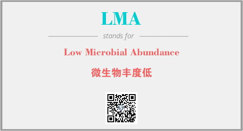 上述内容是“Low Microbial Abundance”作为“LMA”的缩写,解释为“微生物丰度低”时的信息,以及英文缩略词LMA所代表的英文单词,其对应的中文拼音、详细解释以及在英文中的流行度和相关分类、应用领域及应用示例等。