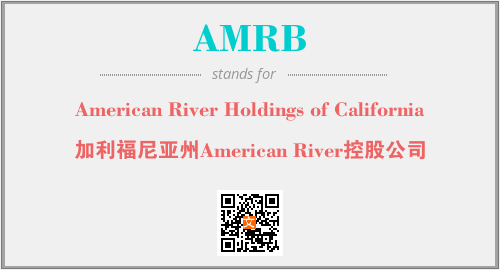 上述内容是“American River Holdings of California”作为“AMRB”的缩写,解释为“加利福尼亚州American River控股公司”时的信息,以及英文缩略词AMRB所代表的英文单词,其对应的中文拼音、详细解释以及在英文中的流行度和相关分类、应用领域及应用示例等。