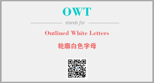 英文缩略词“OWT”经常作为“Outlined White Letters”的英文缩写来使用,中文表示:“轮廓白色字母”。本文将详细介绍英文缩写词OWT所代表英文单词,其对应的中文拼音、详细解释以及在英语中的流行度。此外,还有关于缩略词OWT的分类、应用领域及相关应用示例等。