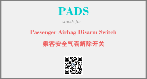 上述内容是“Passenger Airbag Disarm Switch”作为“PADS”的缩写,解释为“乘客安全气囊解除开关”时的信息,以及英文缩略词PADS所代表的英文单词,其对应的中文拼音、详细解释以及在英文中的流行度和相关分类、应用领域及应用示例等。