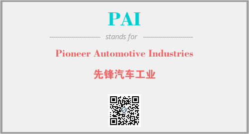 上述内容是“Pioneer Automotive Industries”作为“PAI”的缩写,解释为“先锋汽车工业”时的信息,以及英文缩略词PAI所代表的英文单词,其对应的中文拼音、详细解释以及在英文中的流行度和相关分类、应用领域及应用示例等。