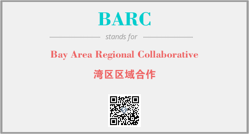 上述内容是“Bay Area Regional Collaborative”作为“BARC”的缩写,解释为“湾区区域合作”时的信息,以及英文缩略词BARC所代表的英文单词,其对应的中文拼音、详细解释以及在英文中的流行度和相关分类、应用领域及应用示例等。