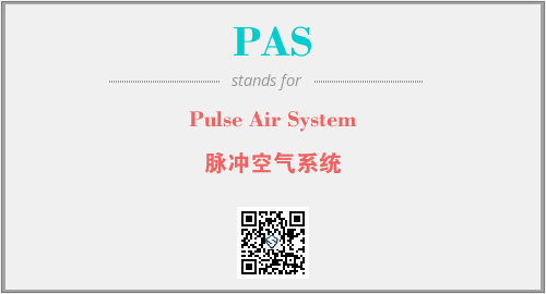 上述内容是“Pulse Air System”作为“PAS”的缩写,解释为“脉冲空气系统”时的信息,以及英文缩略词PAS所代表的英文单词,其对应的中文拼音、详细解释以及在英文中的流行度和相关分类、应用领域及应用示例等。