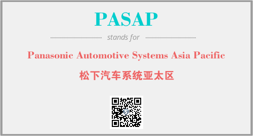 以上为Panasonic Automotive Systems Asia Pacific英文缩略词PASAP的中文解释,以及该英文缩写在英语的流行度、分类和应用领域方面的信息。